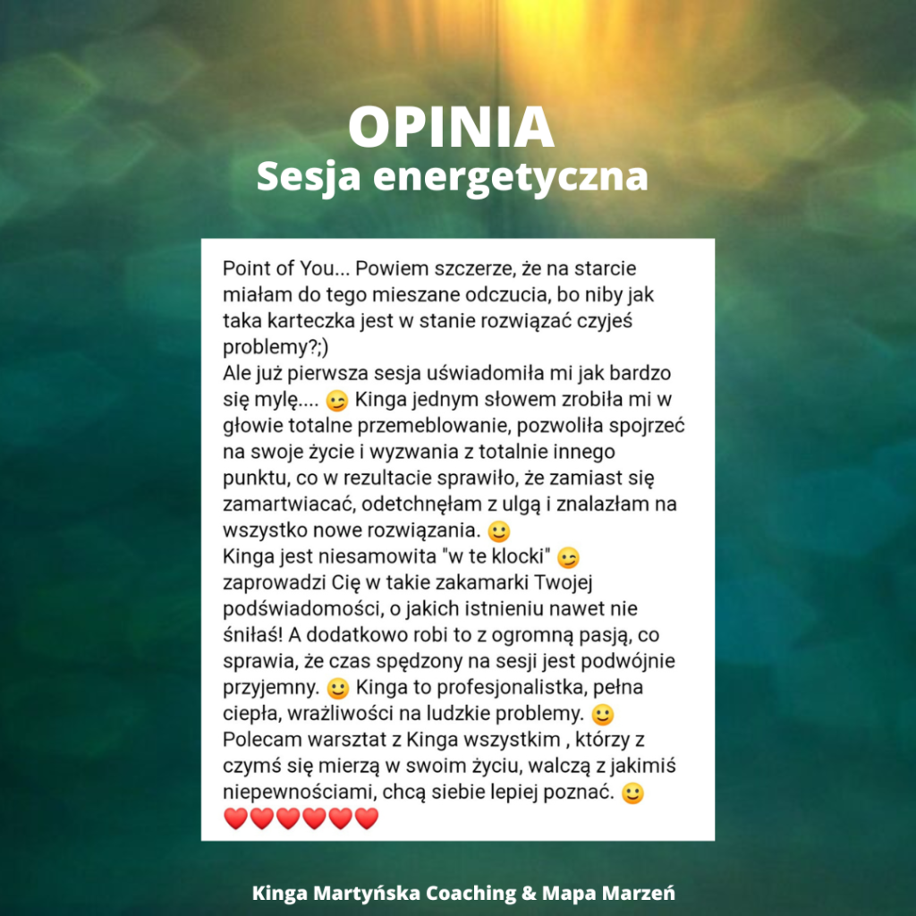- sesję energetyczną „Jestem szczęśliwy/a gdy…” metodą Points of You (ODKRYCIE)