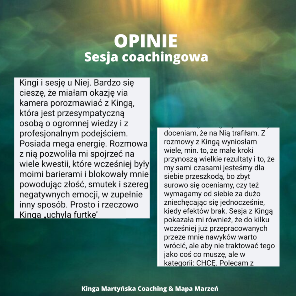 Zapraszam na sesje coachingowe, gdzie razem możemy pracować nad tymi i innymi tematami, aby osiągnąć pełny potencjał i zacząć żyć według swojej własnej filozofii